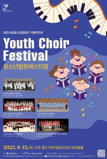 2001년 첫 무대를 시작으로 20년 넘게 이어져 온 청소년합창페스티벌은 대전을 비롯한 국내외 청소년 합창단이 음악으로 교류하며 성장해 온 전통 있는 축제다. 올해 무대에는 전국에서 활발히 활동하는 소년소녀·청소년 합창단들이 한자리에 모여 순수한 화음을 선사하며, 희망의 에너지를 나눈다.