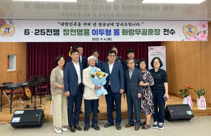 함평군은 7일 “6·25 전쟁 참전 영웅 이두형 상사(97세)가 지난 4일 학교면 학나래문화센터에서 열린 무공수훈훈장 전수식에서 화랑무공훈장을 수훈했다”고 밝혔다.