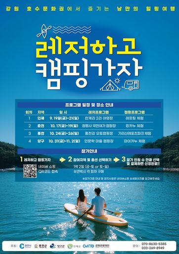 내고향뉴스 고광만 기자 | 강원관광재단과 호수문화관광권역은 오는 9월부터 11월까지 ‘레저하고 캠핑가자’ 프로그램을 운영한다.