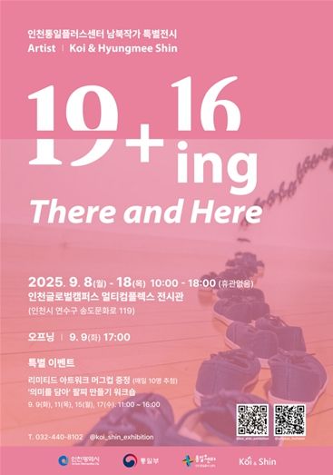 이번 전시는 인천통일플러스센터가 추진하는 통일 공감 사업의 일환으로, 탈북 작가 코이와 남한 작가 신형미의 작품을 함께 선보인다. 전시 제목 ‘19+16ing’은 코이 작가가 북한에서 보낸 19년과 남한에 정착해 살아온 16년을 의미한다.