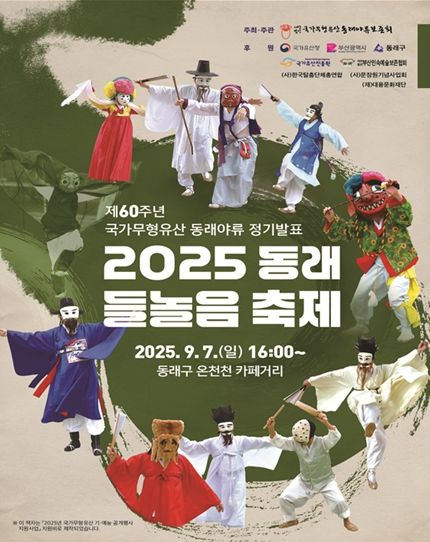 내고향뉴스 고광만 기자 | 부산시는 오늘(7일) 오후 4시 온천천 카페거리 공연장에서 제60주년 동래야류 정기공연 '동래 들놀음 축제'를 개최한다고 밝혔다.