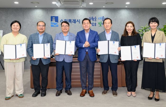 이재준 수원시장은 5일 집무실에서 제7기 시민배심법정 판정관으로 위촉된 손수일 변호사, 부판정관 김영운 변호사와 심의대상결정위원회 위원 7명에게 위촉장을 수여했다. 임기는 2년이다.