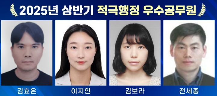 내고향뉴스 고광만 기자 | 충북 증평군은 공직사회 내 적극행정 문화확산과 직무역량 강화를 위해 상반기 적극행정 우수공무원 4명을 선발했다고 8일 밝혔다.