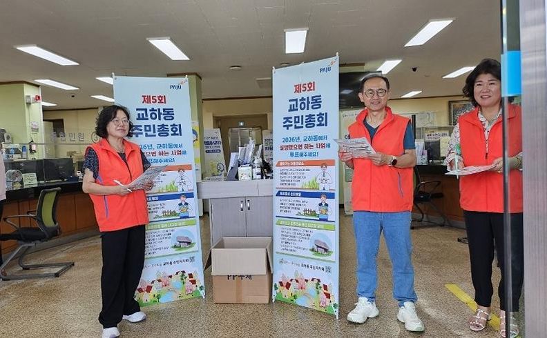 한편 주민총회는 오는 9월 17일 교하초등학교 체육관에서 개최되며, 사전투표 결과를 반영해 최종 의제 사업 우선순위가 결정될 예정이다.
