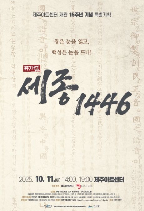 내고향뉴스 고광만 기자 | 제주아트센터는 개관 15주년을 맞아 대형 창작 뮤지컬 ‘세종, 1446’을 10월 11일 오후 2시와 7시 특별기획 공연으로 선보인다.