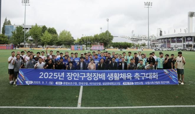 내고향뉴스 고광만 기자 | 수원시 장안구는 지난 7일, 수원종합운동장·여기산·만석공원 인조잔디구장, 성균관대학교 축구장 등에서 ‘2025년 장안구청장배 생활체육 축구대회’를 개최했다,