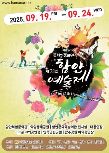 (사)경남예총 함안지회가 주최하고 국악·문인·미술·연극·연예·음악협회와 관내 문화예술 단체가 주관하는 이번 행사는 다양한 분야의 지역 예술인들이 갈고닦은 기량을 선보여 지역민들이 함께 즐기고 소통할 수 있는 군민 화합의 장을 제공할 것이다.