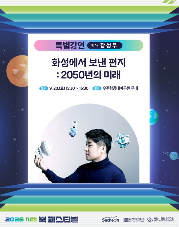행사는 ▲사천시 가족센터 가족합창단 공연 ▲책과 함께 하는 음악 공연 ▲풍선·버블 마술쇼 ▲과학 유튜버이자 前 한국천문연구원 연구원인 강성주 박사의 특별 강연 등 남녀노소 누구나 즐길 수 있는 무대가 펼쳐진다.