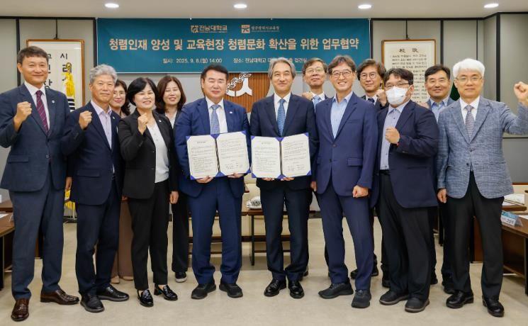 전남대 이근배 총장은 “대학이 가진 전문성과 교육청의 현장 경험이 만나 시너지 효과를 낼 것으로 기대한다”며 “지역사회 전반에 청렴 의식이 확산될 수 있도록 적극 협력하겠다”고 밝혔다.