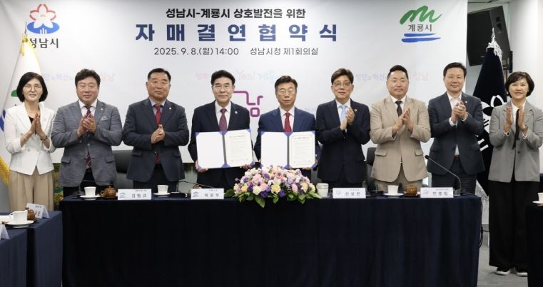 내고향뉴스 고광만 기자 | 계룡시와 경기도 성남시가 8일 성남시청에서 우호 교류 증진과 상호 발전 자매결연 협약을 체결했다고 밝혔다.