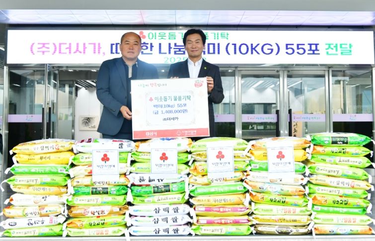 내고향뉴스 채필재 기자 | 경산시 진량읍 소재 ㈜더사가(대표 구광회)는 9일 경산시청을 방문하여 백미(10kg) 55포를 기탁했다. 아울러 백미(20kg) 20포는 별도로 압량읍에 기탁했다.