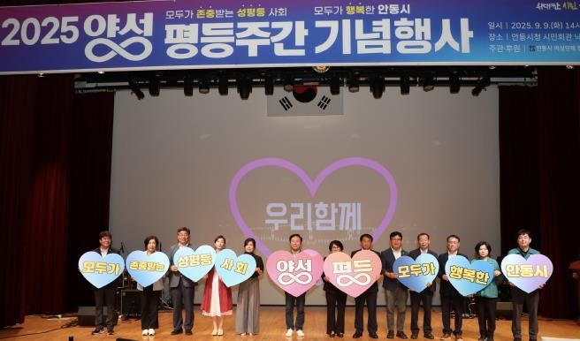 권기창 안동시장은 “양성평등은 단순한 정책 목표를 넘어, 사회와 공동체의 성숙도를 보여주는 척도”라며 “안동시는 모든 시민이 존중받고 조화롭게 살아가는 사회를 구현하기 위해, 양성평등 문화 확산과 제도적 지원에 최선을 다하겠다”고 밝혔다.