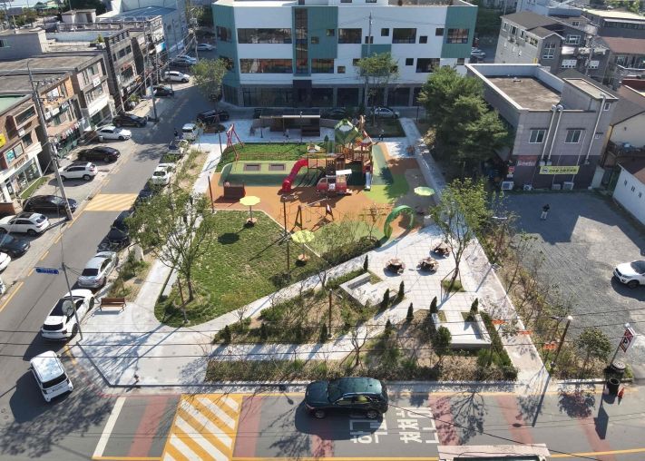 삼문동 제7어린이공원은 ‘어린이 모험놀이터’를 주제로 조성돼, 짚라인 등 다양한 놀이시설을 갖추고 일부 공간에는 잔디를 식재해 아이들이 안전하게 뛰어놀 수 있는 활동 공간을 마련했다. 이로써 놀이와 휴식이 공존하는 가족 친화적 공원으로 탈바꿈했다.