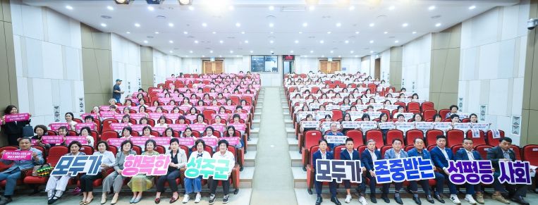 성주군여성단체협의회(회장 여화선)가 주관한 이번 행사는‘모두가 존중받는 성평등 사회, 모두가 행복한 성주군’이라는 슬로건 아래 지역 내에서 다년간 봉사활동을 이어오며 양성평등 향상에 앞장선 여성단체 회원 표창과 기념식, 양성평등 퍼포먼스, 주제강연 순으로 진행됐다.