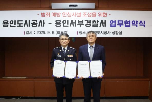 내고향뉴스 관리자 기자 | 용인도시공사는 9일 용인서부경찰서와 범죄예방 안심시설 조성을 위한 상호협력 업무협약을 체결했다고 밝혔다.