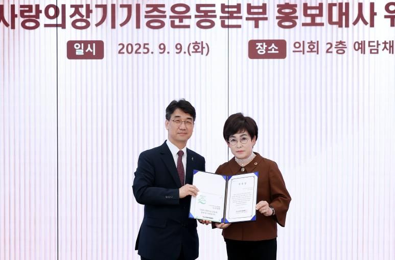 내고향뉴스 관리자 기자 | 경기도의회 교육기획위원회 소속 김선희 도의원(국민의힘, 용인7)이 9월 9일 ‘장기기증의 날’을 맞아 재단법인 사랑의 장기기증운동본부 홍보대사로 위촉됐다.