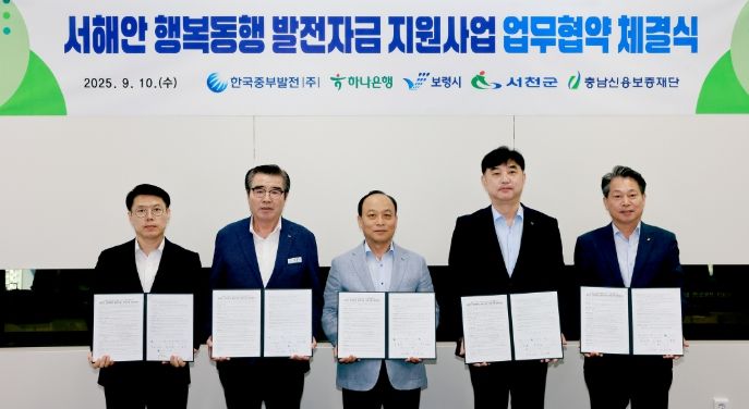 내고향뉴스 고광만 기자 | 보령시는 10일 한국중부발전, 하나은행, 충남신용보증재단 등과 소상공인 경영 안정화를 위한 ‘서해안 행복동행 발전자금 지원 업무협약’을 체결했다고 밝혔다.
