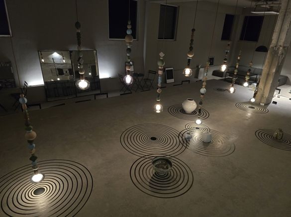 카페 내 대형 콘크리트 테이블을 활용해 도자기, 빛, 오브제를 결합한 작품 30여 점과 달항아리 사진을 전시한다.