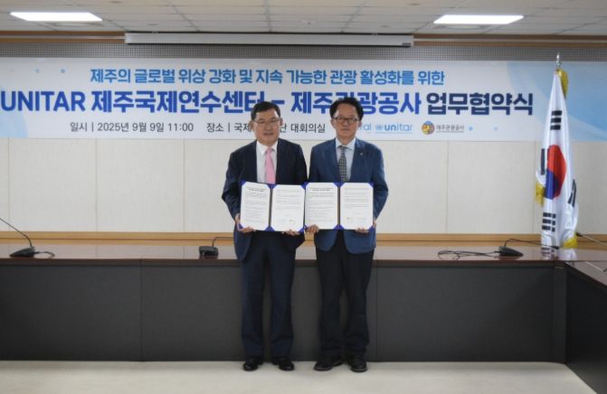 이날 두 기관은 △국제연수 및 훈련 등의 프로그램 운영 △제주 지역문화 기반의 글로컬 관광 콘텐츠 개발·활용 △국제기구 네트워크를 활용한 제주 글로벌 위상 강화 △유엔 지속가능발전목표(SDGs) 이행 증진 등의 분야에서 공동 협력하기로 했다.