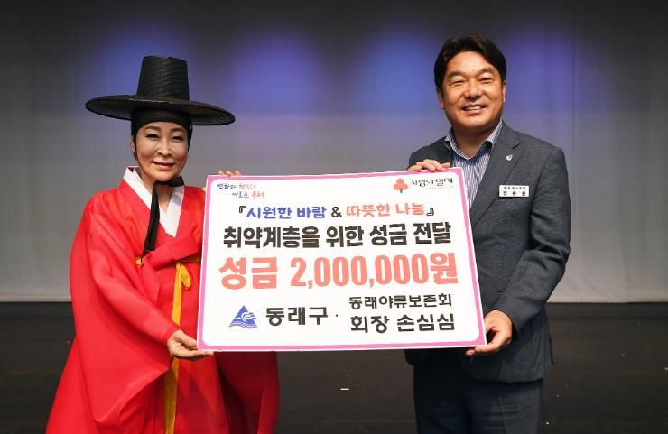 장준용 동래구청장은 “동래야류 60주년의 뜻깊은 행사에서 값진 나눔을 실천해주신 손심심 회장님께 진심으로 감사드린다”라며 “동래구는 과거와 현재, 그리고 미래를 잇는 살아있는 동래야류보존회 발전에 더욱 노력하고, 기탁된 성금은 어려운 문화예술 취약계층을 위해 소중히 사용하겠다”라고 말했다.
