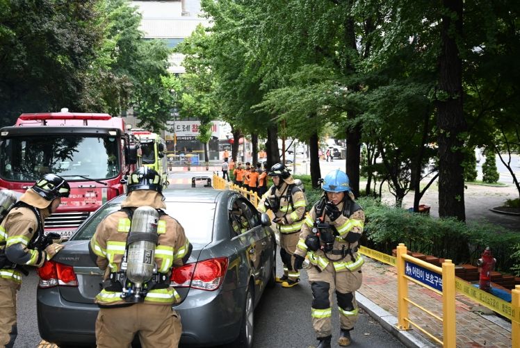 이날 훈련은 불법 주·정차 차량으로 현장 진입이 불가능한 상황을 가정해 ▲소방차를 이용한 강제 돌파 ▲불법 주·정차 차량의 창문을 파괴 후 소방용수 확보 등 실제 대응 절차를 시연하는 방식으로 진행됐다.