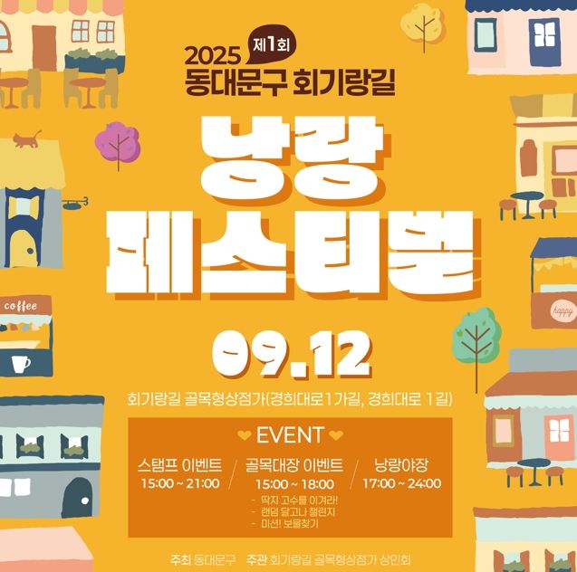 내고향뉴스 관리자 기자 | 서울 동대문구는 12일 회기랑길 골목형상점가(경희대로1가길, 경희대로1길) ‘낭랑 페스티벌’과 13일 장안마실상점가(답십리로66길 일대) ‘생맥주 밤마실’을 이어서 개최한다.