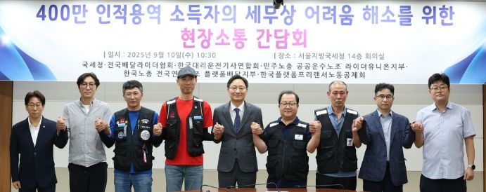 내고향뉴스 관리자 기자 | 국세청은 9월 10일 국세청장 및 주요 간부들과 인적용역 소득자 단체들이 참석한 가운데 「400만 인적용역 소득자의 세무상 어려움 해소를 위한 현장소통 간담회」를 가졌다고 밝혔다.