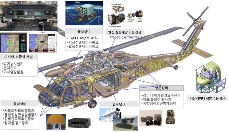 국외 도입을 통해 운영해온 UH/HH-60 헬기는 우리나라 기업들이 창정비를 수행하며 다양한 수리, 개조 능력을 보유한 것으로 평가된다. 이번 성능개량 사업을 국내연구개발로 진행함에 따라 50개 이상의 구성품을 국산화하여 항공분야 기술력 제고, 안정적 군수지원체계 구축, 장기적 비용 절감과 일자리 창출 등 국내 방위산업 육성에도 크게 기여할 것으로 예상된다.