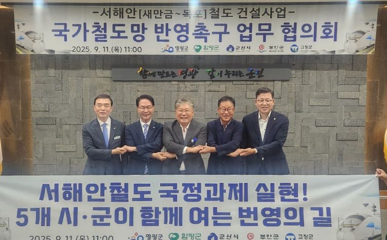 5개 시군은 9월 11일 오전 11시 영광군청에서 서해안철도 국가철도망 반영을 위한 5개 시군 협의회를 개최하고 실현을 위한 공동 대응에 나서기로 했다.