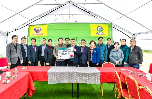 내고향뉴스 고광만 기자 | 함안군은 지난 9월 5일 조근제 함안군수와 이만호 함안군의회 의장을 비롯한 군의회 사절단이 몽골 울란바토르 항올구에 위치한 ‘함안아라농장’을 방문해 대한민국 수박 종자를 전달하고 재배 현장을 둘러보았다고 밝혔다.