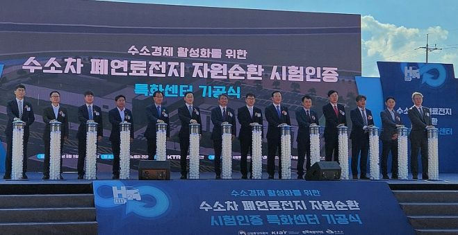내고향뉴스 고광만 기자 | 전북특별자치도는 11일 완주 테크노밸리2산업단지에서 국내 최초로 조성되는 ‘수소차 폐연료전지 자원순환 시험·인증센터’ 기공식을 개최했다고 밝혔다.