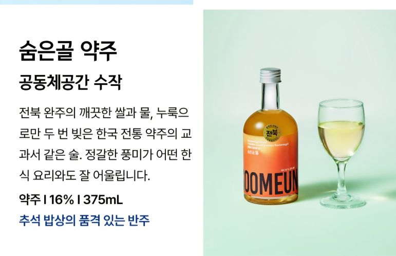 ‘숨은골 약주’는 완주산 쌀로 빚어 10개월 이상 숙성한 깊은 풍미가 특징으로, 이번 선정을 계기로 전국 GS25 편의점에 입점해 소비자들이 보다 쉽게 전통주를 즐길 수 있게 됐다. 또한, 전북도는 GS25 리테일 와인25플러스 플랫폼을 통해 온라인 기획전도 진행해 전국적인 홍보에 나선다.