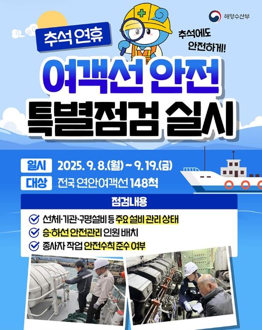 내고향뉴스 고광만 기자 | 추석 연휴 여객선 안전 특별점검 실시