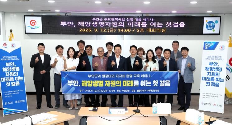 군은 지난 12일 군청 대회의실에서 ‘부안, 해양생명자원의 미래를 여는 첫걸음’을 주제로 정책 세미나를 개최하고 해양생명자원을 활용한 지속가능한 발전 전략을 모색했다.