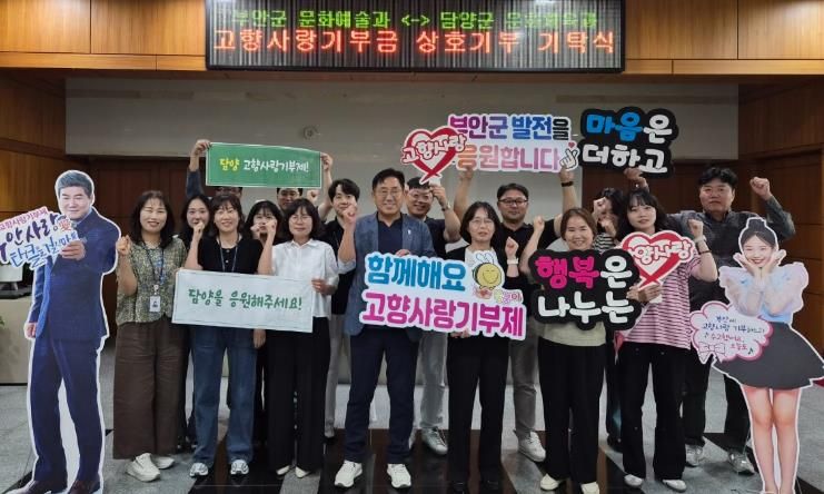 내고향뉴스 고광만 기자 | 부안군은 지난 12일 부안군청에서 부안군 문화예술과와 담양군 문화체육과 소속 직원들이 100만 원씩 고향사랑 상호기부를 실천했다고 밝혔다.
