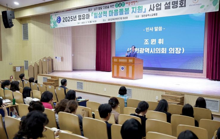 내고향뉴스 채필재 기자 | 대전시의회 조원휘 의장은 15일 대전교육과학연구원에서 개최된 2025년 영유아 일상적 마음돌봄 지원사업 설명회에 참석해 보육 일선에서 최선을 다하는 보육인들께 감사를 표하고, 아이들과 보육인들 모두 행복한 보육환경 조성을 약속했다.
