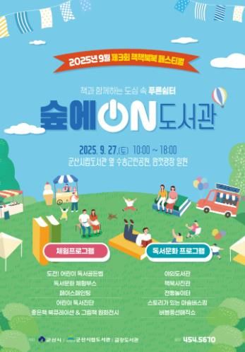 이번 행사는 ‘책과 함께하는 도심 속 푸른 쉼터, 군산’을 주제로, 자연 속에서 자유롭게 책을 읽고 다양한 체험과 문화 공연을 즐길 수 있도록 마련됐다.