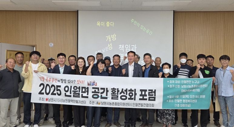 내고향뉴스 고광만 기자 | 남원시농촌종합지원센터는 지난 11일 시군역량강화사업의 일환으로 인월면 발전협의회와 함께 '2025 인월면 공간활성화포럼'을 개최했다.