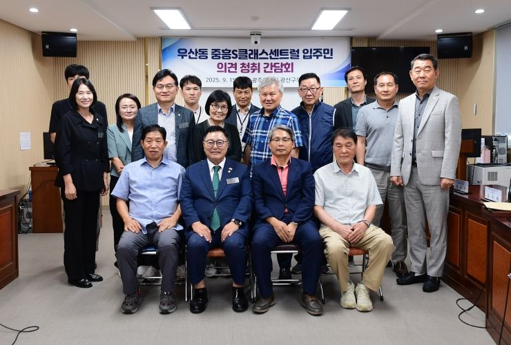 내고향뉴스 김형구 기자 | 김명수 광산구의회 의장(더불어민주당, 신흥동·우산동·월곡1·2동·운남동)이 15일 우산동 선수촌 중흥S클래스의 말미산 토사 유출 등으로 인한 피해를 근본적으로 예방하기 위해 주민들의 의견을 청취하는 간담회를 개최했다.