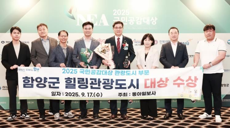 진병영 함양군수는 “이번 수상은 군민과 행정이 함께 만들어낸 값진 성과”라며 “앞으로도 지속 가능한 관광 생태계를 구축해 몸과 마음이 머무는 진정한 힐링 도시 함양을 만들어 나가겠다”라고 밝혔다.