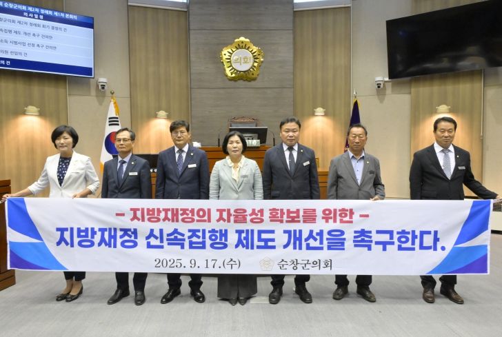 이에 순창군의회는 ▲지방자치단체의 예산 자율권을 침해하는 신속집행 의무 조항 폐지 ▲실적 경쟁과 불필요한 보고 폐지 ▲지역 실정에 맞는 유연한 예산 집행 체계와 이를 지원할 행정·재정 기반 강화 등을 정부에 강력히 촉구했다.
