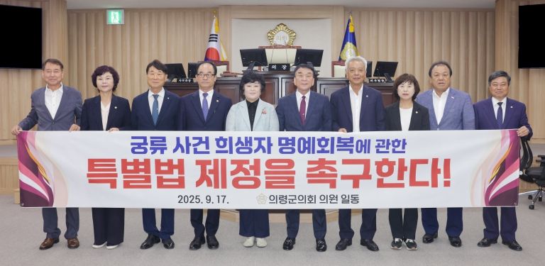 건의안을 대표 발의한 황성철 의원도 “궁류 사건은 개인의 일탈이 아닌 국가의 명백한 과실로 발생한 참사”라며 “희생자와 유가족들이 더 이상 방치되어서는 안 된다”고 밝혔다. 의령군의회는 채택한 건의안을 정부기관과 국회, 여야정당에 공식 전달했다.