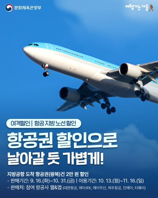 문화체육관광부, 항공권 할인으로 날아갈 듯 가볍게!