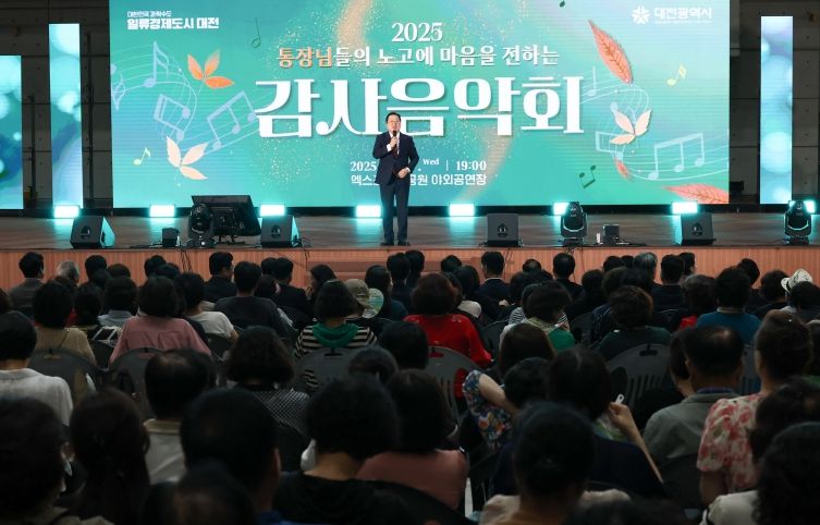 내고향뉴스 채필재 기자 | 대전시는 9월 17일 오후 7시 엑스포시민광장 야외공연장에서 5개 구 2,600여 명의 통장들을 초청해 감사음악회를 개최했다. 이번 행사는 주민등록 사실조사, 복지 사각지대 발굴, 대전 0시 축제, 봉사활동 등 지역 곳곳에서 묵묵히 헌신해 온 통장들에게 감사의 마음을 전하기 위해 마련됐다.