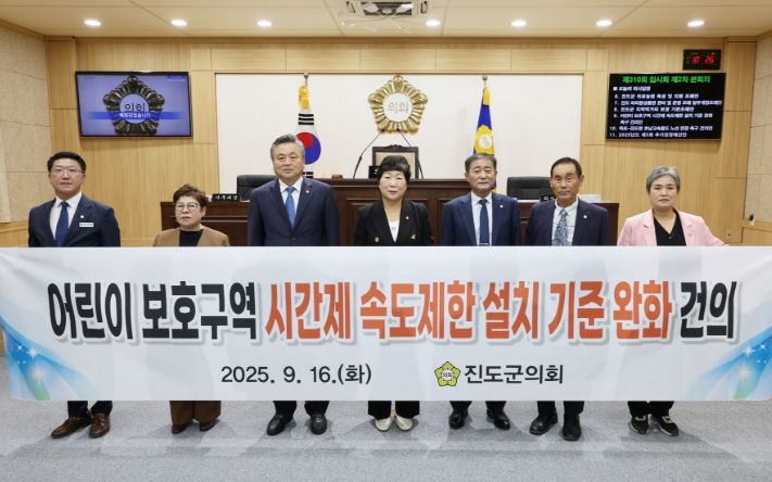 내고향뉴스 채필재 기자 | 진도군의회는 9월 16일에 열린 제310회 진도군의회 임시회에서 '어린이 보호구역 시간제 속도제한 설치 기준 완화 촉구 건의안'을 채택했다고 밝혔다.