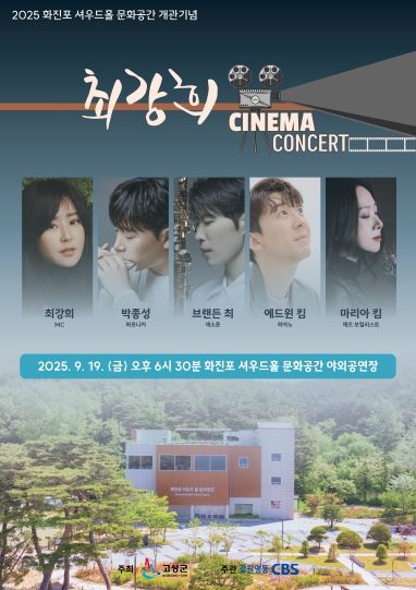 내고향뉴스 채필재 기자 | 평화 경제 거점 도시 강원 고성군(군수 함명준)은 9월 19일(금) 오후 6시 30분, 거진읍 화진포길 278에 위치한 화진포 셔우드 홀 문화공간 야외무대에서 '화진포 셔우드 홀 시네마 콘서트'를 개최한다.