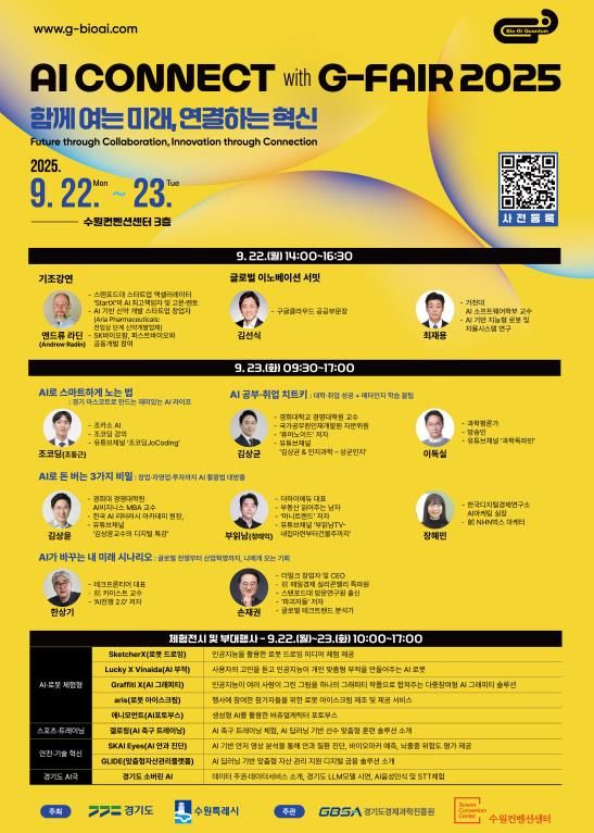 내고향뉴스 채필재 기자 | 경기도는 22일부터 23일까지 수원컨벤션센터에서 인공지능(AI)과 실생활의 융합을 주제로 한 ‘AI Connect with G-FAIR 2025(에이아이 커넥트 위드 지페어)’를 개최한다.