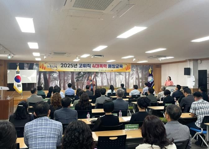 내고향뉴스 라정운 기자 | 경상북도울진교육지원청은 2025년 9월 22일, 3층 대회의실에서 고위직 대상 4대폭력(성희롱, 성폭력, 성매매, 가정폭력) 예방교육을 시행했다.