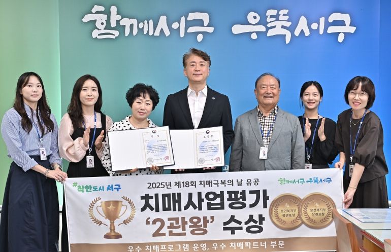 김이강 서구청장은 “이번 수상은 지역사회와 민관이 함께 만들어낸 값진 성과”라며 “앞으로도 치매 예방과 관리에 실질적인 도움이 되는 사업을 적극 발굴해 치매 걱정 없는 착한 서구를 구현하겠다”고 말했다.