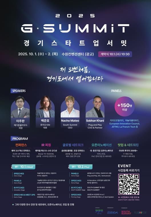 내고향뉴스 채필재 기자 | 국내 최고 수준의 글로벌 스타트업 투자 박람회인 ‘경기 스타트업 서밋(G-SUMMIT)’이 오는 10월 1일부터 2일까지 수원컨벤션센터에서 열린다.